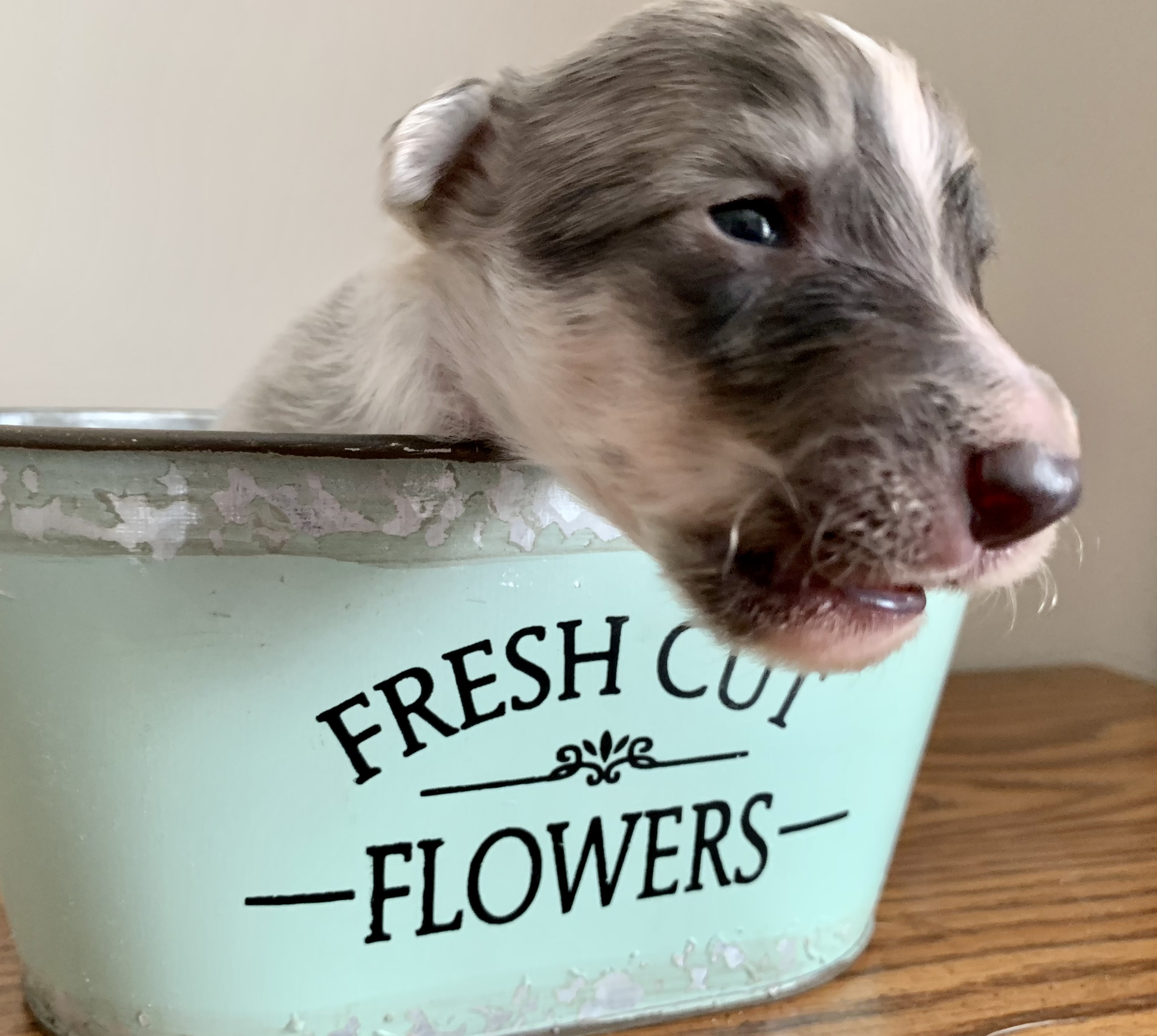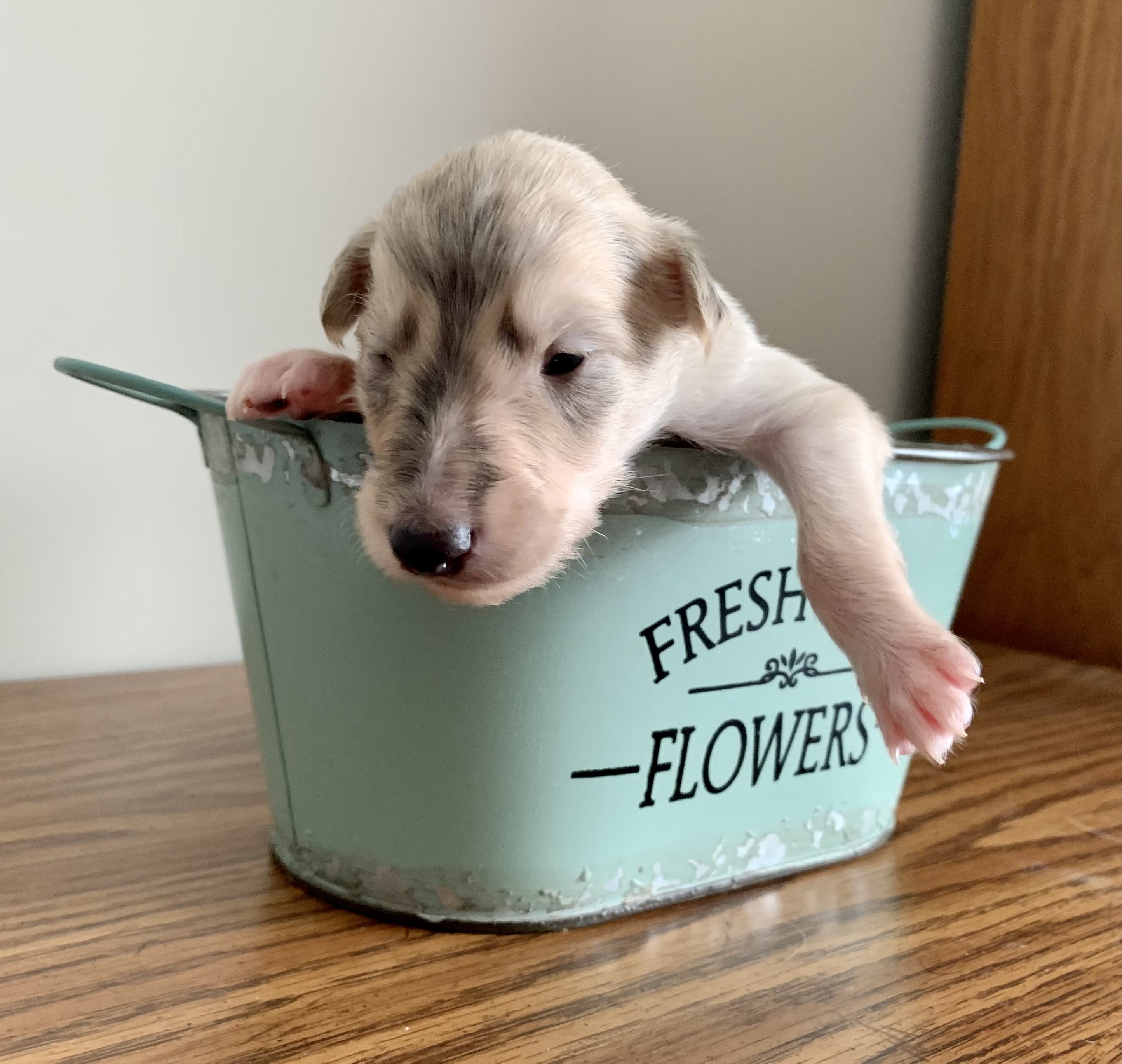 Male, silver or cream brindle