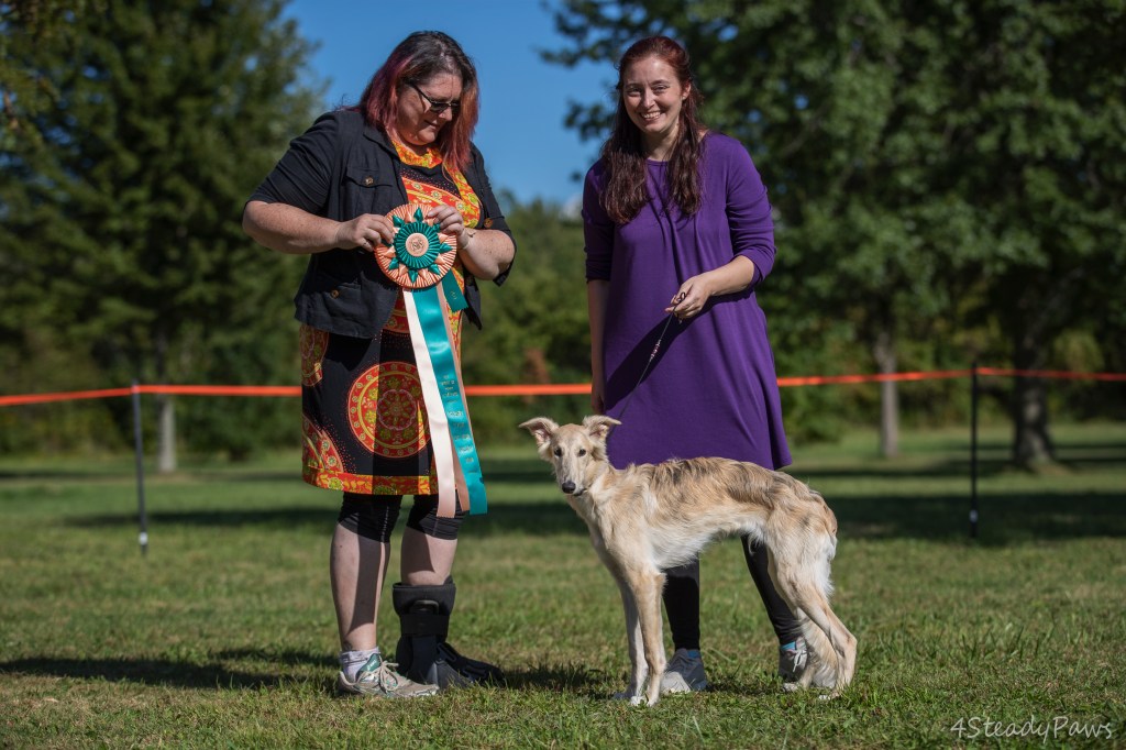 Freddie has taken naturally to the show ring. After only one day of practice, he came with me to the 2021 Ohio Classic, where he won Best Opposite Sex Puppy in show for the puppy sweeps. It was a long day for a young puppy, but he was a happy, enthusiastic boy through both shows that day—which means I let him stand however he wanted for his win photo.